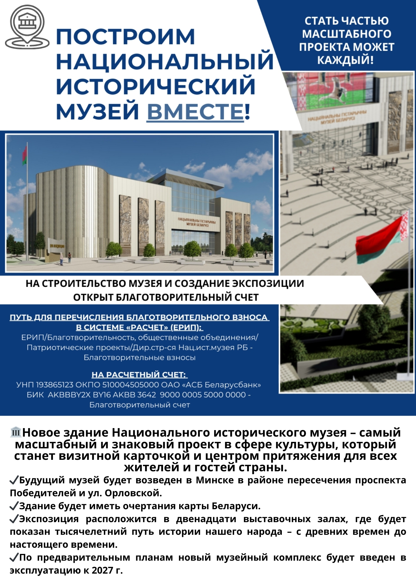 В Минске реализуется проект по строительству нового здания Национального исторического музея. Объект станет одной из визитных карточек нашей страны. Поучаствовать в его создании сможет каждый.